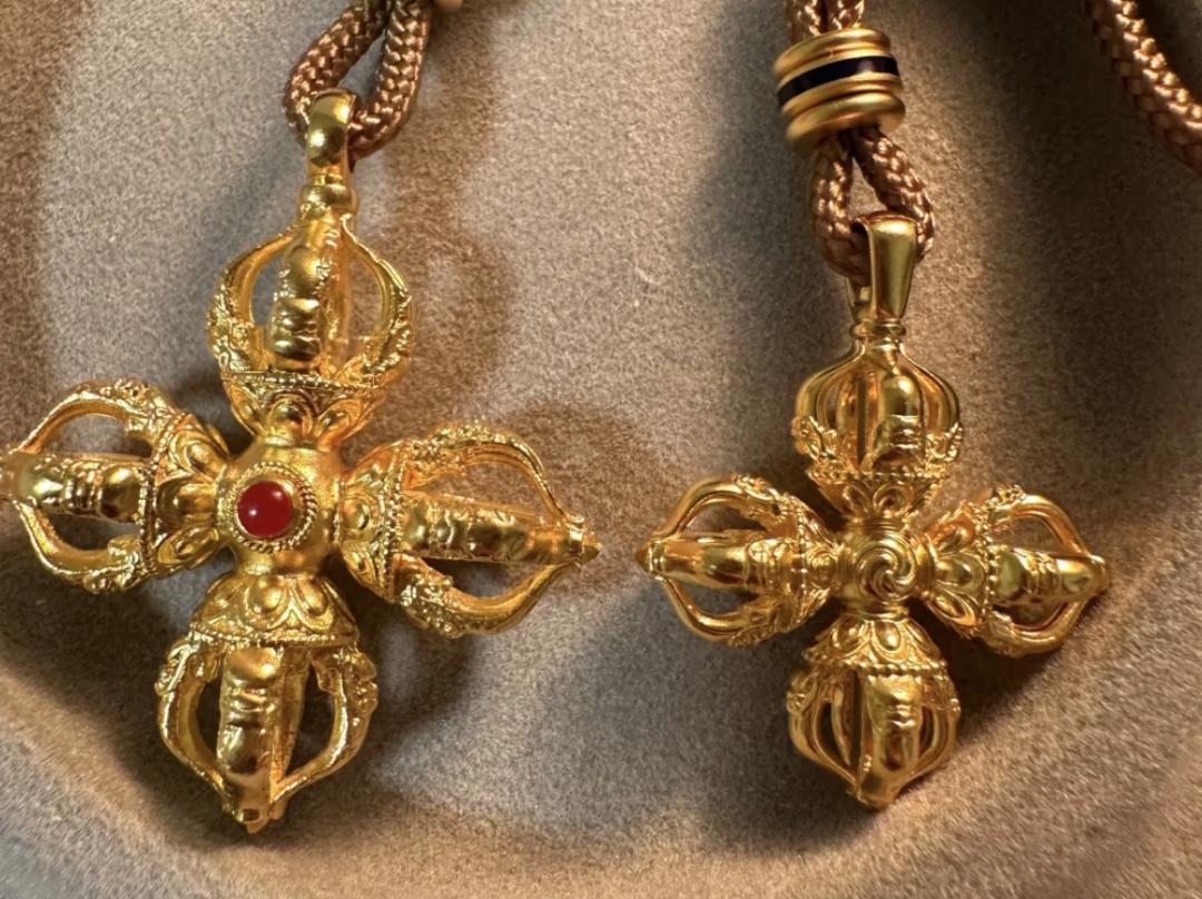 老铺有极强的藏传佛教风格,比如其十字金刚杵的设计灵感就源自藏传佛教法器,象征“无坚不摧的智慧”,寓意消除烦恼。